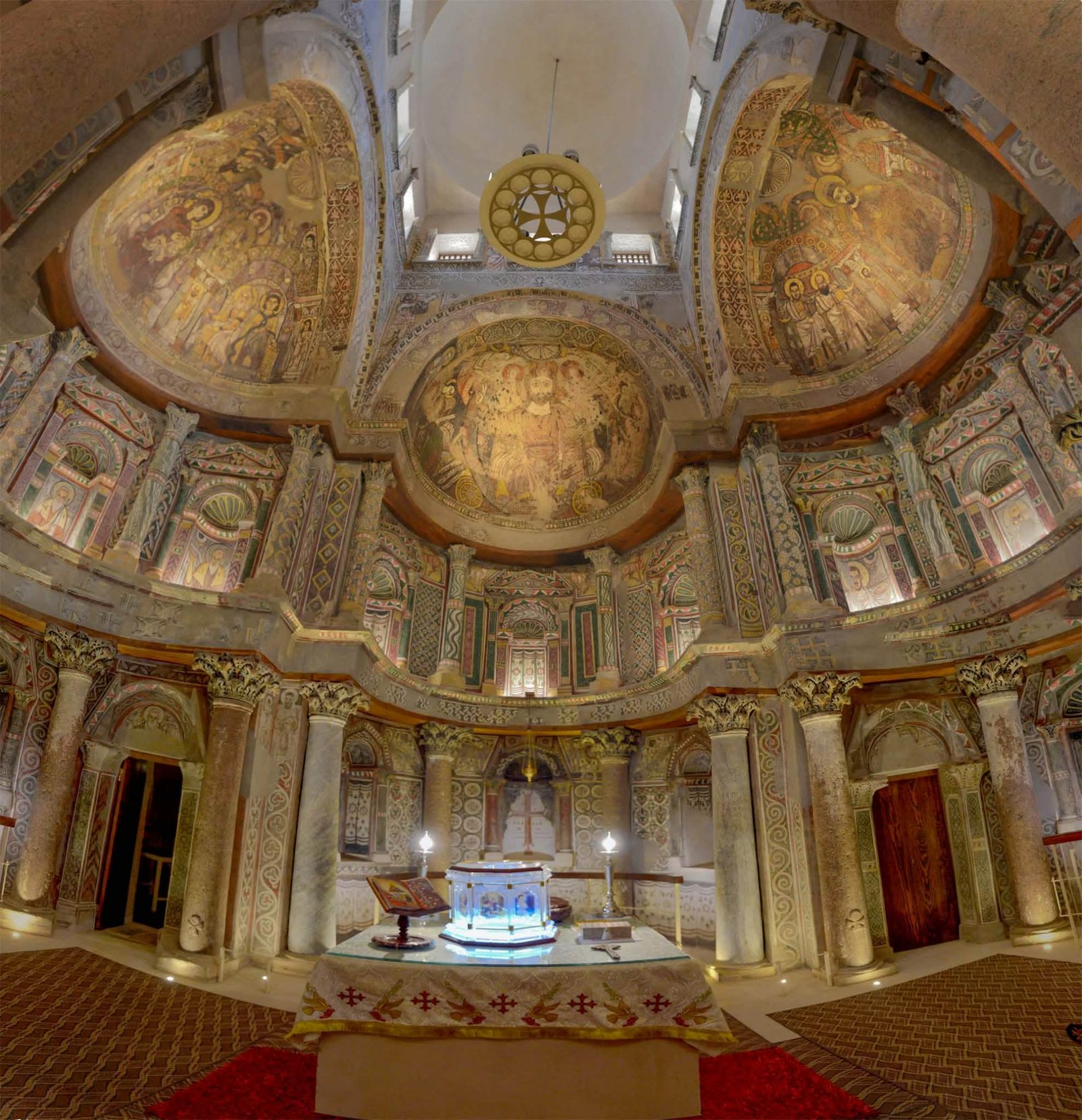 ولم يبق من مكونات الدير غير الكنيسة الرئيسية، والتي تتميز بالهيكل ثلاثي الحنيات المزخرف برسوم دينية ذات ألوان رائعة تعكس روح الفن والعمارة القبطية خاصة في الفترة المبكرة.