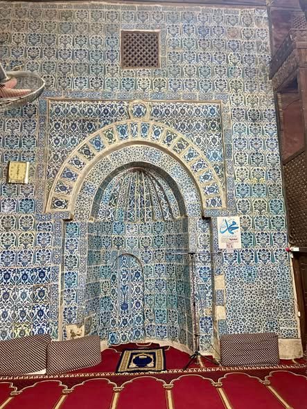 وتعود تسمية المسجد بهذا الاسم بسبب وجود البلاطات الخزفية التي تغطي جدران المحراب