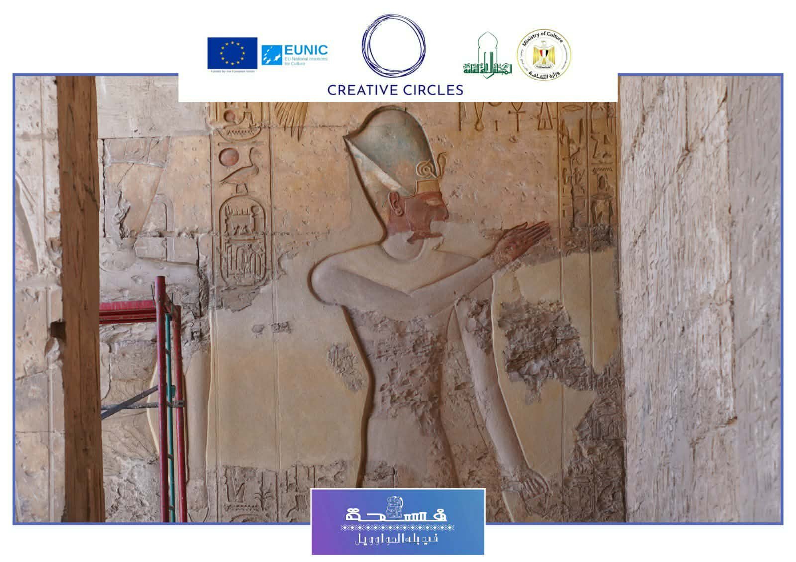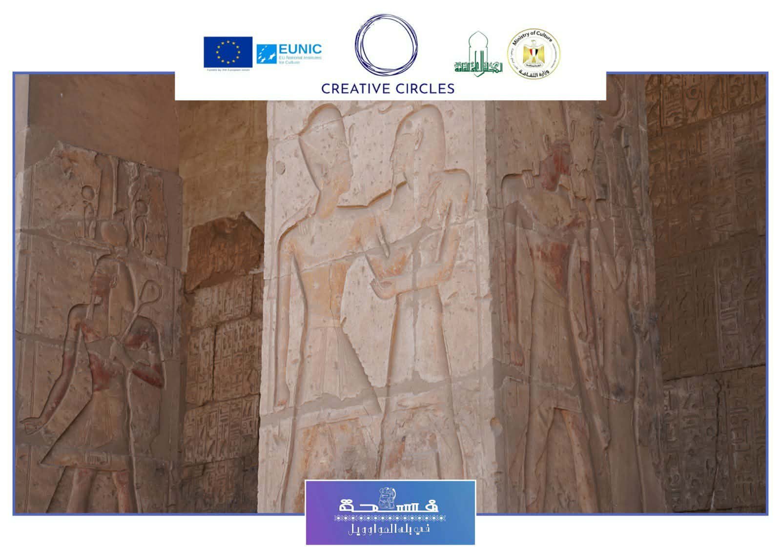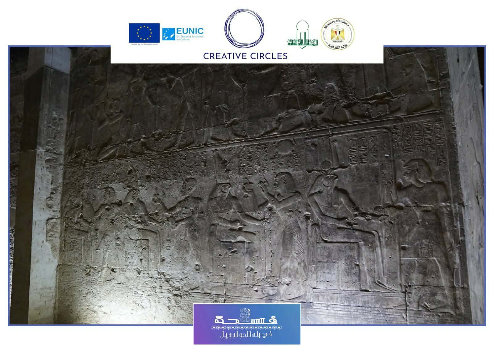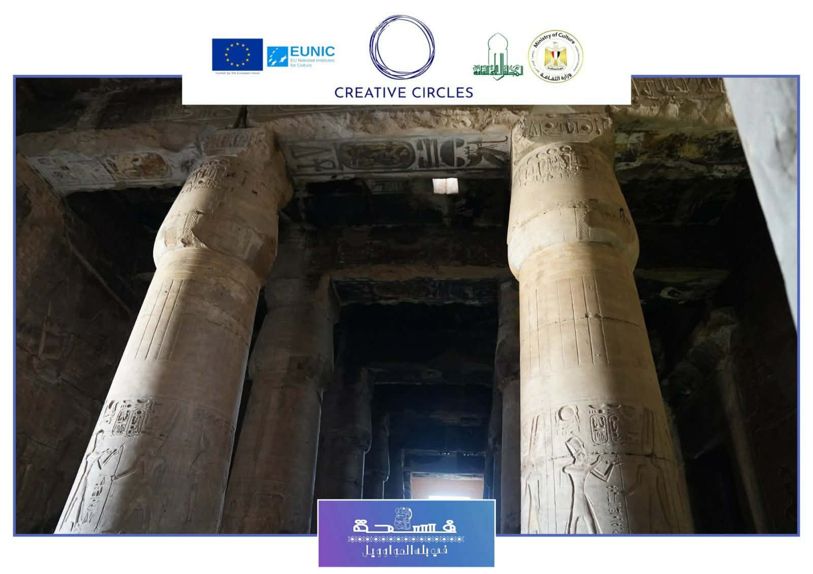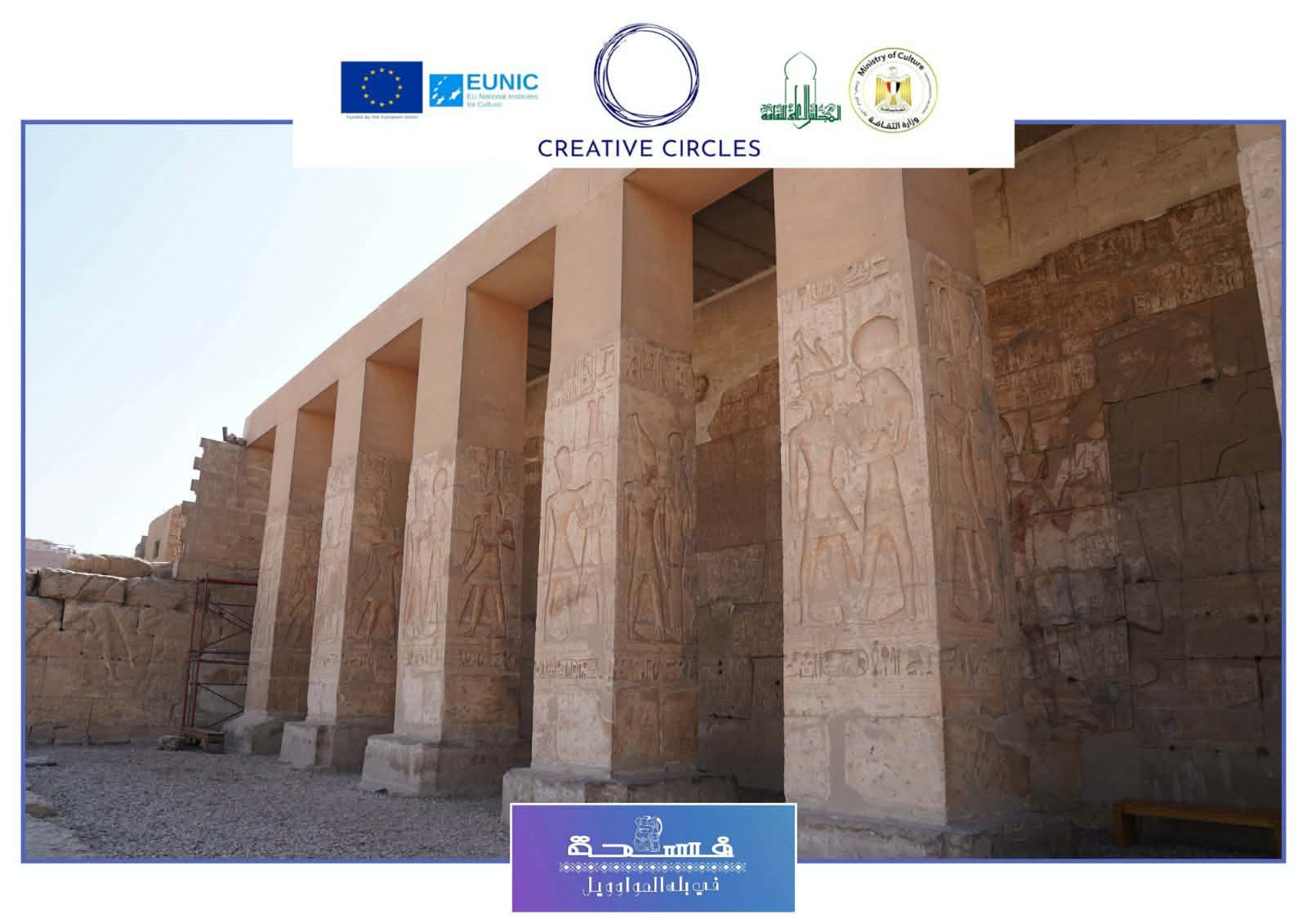 فى منطقة الشرق يوجد ممر الملوك وسجل به القائمة الملكية وتحوي 76ملكا بداية من مينا وحتي سيتي ويوجد قائمة الالهة بها 130 اله ،ثم بهو القوارب ثم المذبح.وفي الغرب ممر الثور وأهم المناظر منظر الالقاء بثور الجنوب بواسطة رمسيس وابنه آمون "حر خبش اف" والي الخلف من المعبد الاوزوريون وهو ضريح تذكاري للإله أوزوريس .